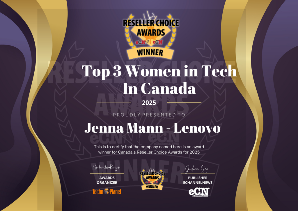 Jenna is also a 2025 Woman in Tech Award winner. See complete story: https://www.e-channelnews.com/announcing-reseller-choice-and-women-in-tech-awards-2024-for-canada/